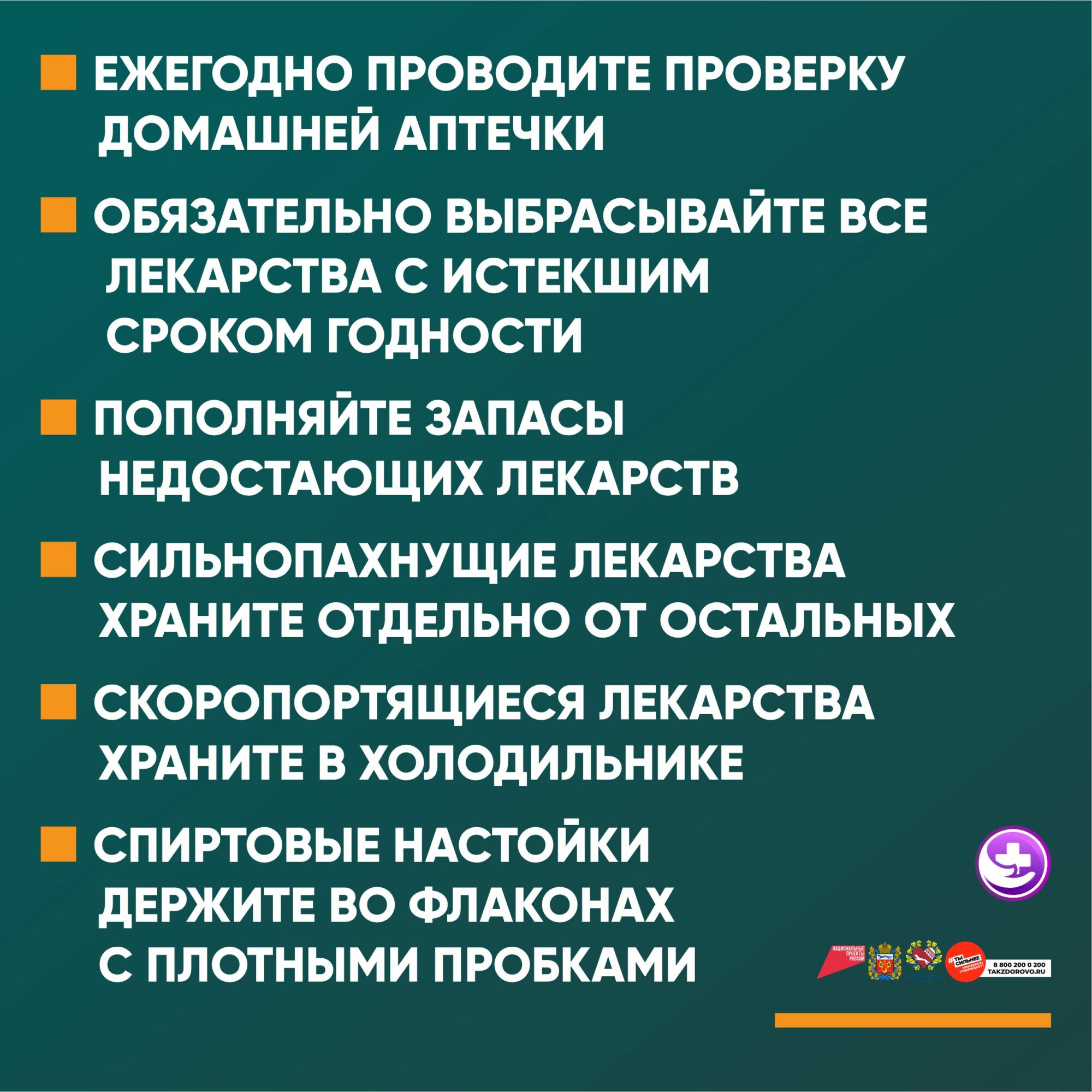 Необходимо раз в год проводить проверку домашней аптечки: избавляться от таблеток, у которых истек срок годности; пополнять запасы недостающих лекарств; хранить препараты при условиях, прописанных на упаковке; принимать средство строго согласно инструкции, антибиотики только по назначению врача.